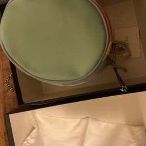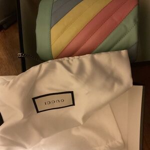 Gucci's 'GG Marmont 2.0' bucket bag is made from quilted lilac denim that's jacquard-woven with the house's signature 'GG' monogram. It's threaded with tonal leather drawstrings and has a gold-tone chain strap that matches the logo hardware. Stow your phone, keys and sunglasses inside and keep cards organized in the designated slots.