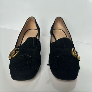 Gucci Marmont Black Fringed Suede Loafers 37.5