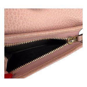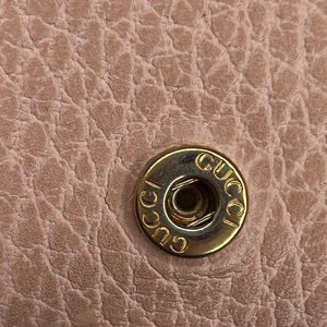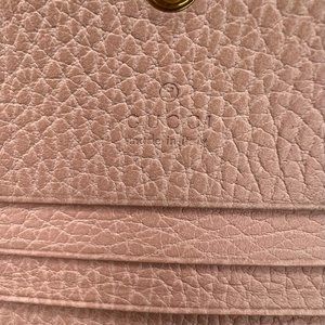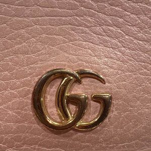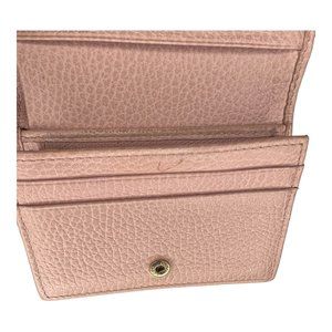 Authentic Gucci Marmont Card Case Pebbled Leather Wallet. 5 internal card slots. Button snap closure. Coin compartment with zip closure and bill compartment. Pre-loved condition. Minor mark on exterior and marks on interior. See pictures.