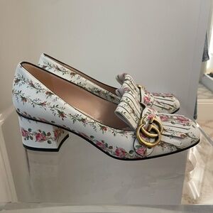 Worn only twice! Gucci Marmont Floral Loafer in size 8.5/38 1/2. No signs of wear except of heel. No visible scratches or marks. Very comfortable and perfect for Spring!! Looks amazing with jeans or flowy dress!