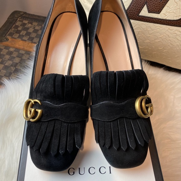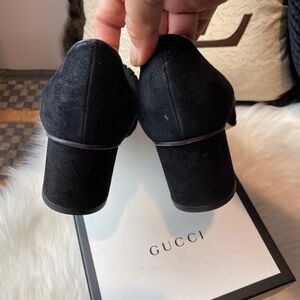 Size 40 Gucci Marmont double GG block heels. Black suede in excellent condition. Wore only a few times. Original Box included.