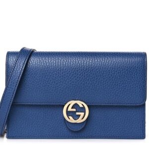 Leather interlocking GG chain wallet crossbody that can be worn as shoulder bag or clutch as well.