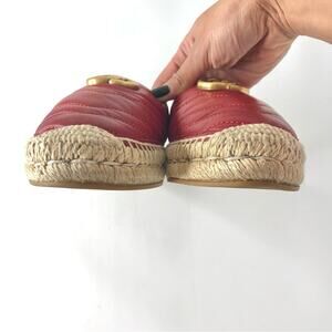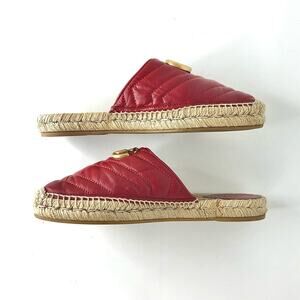 Gucci Marmont GG Hibiscus Red Leather Slip On Mules Espadrille Flats 37