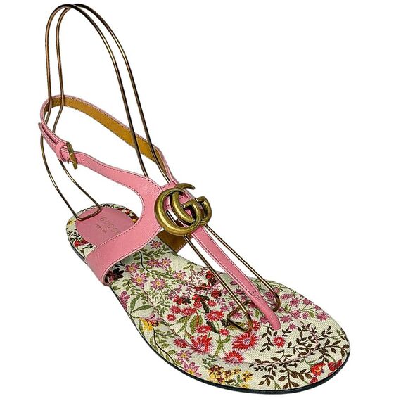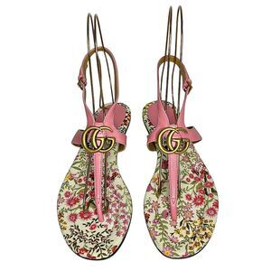 Gucci Marmont GG Logo Charlotte Nappa Leather Sandals Butterfly Pink EU 37.5