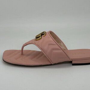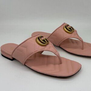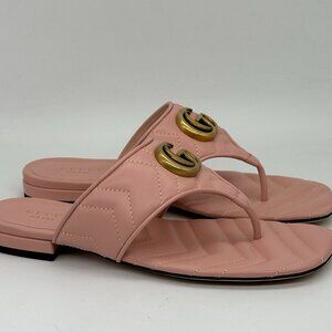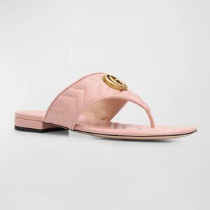 Gucci Marmont GG Padded Chevron Matelasse Leather Thong Flat Sandals Shoes