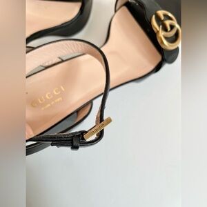 Gucci Marmont GG Platform Sandals EU 37 US 7 Black Leather Block High Heel
