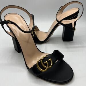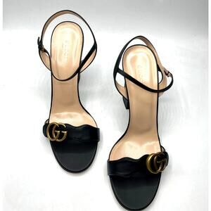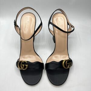 Gucci Marmont GG Platform Sandals Size 42 US 12 Black Leather Logo Block Heel