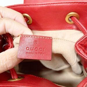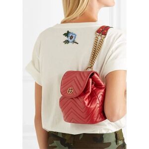 Gucci Marmont Metallasse Quilted Chevron Leather Draw String Backpack Mini GG in Red