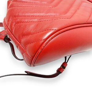 Gucci Marmont Metallasse Quilted Chevron Leather Drawstring Backpack Mini GG Red