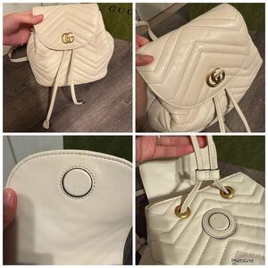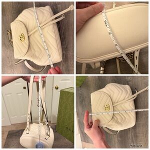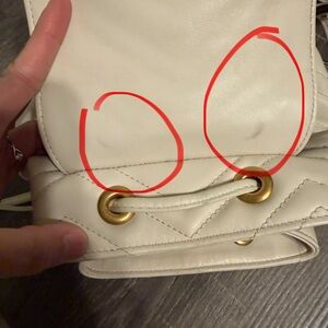 Please note this is a USED item, please manage your expectations. Exterior leather has a lot of scuff marks and inside needs a lot of cleaning. Bag is also slouchy due to wear and there is light discoloration on the hardware.