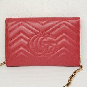 Gucci Marmont Red Chevron Gold Chain Clutch Crossbody Bag 550-100525