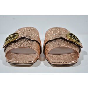Gucci Marmont Rose Gold GG Interlocking Metal Logo Mule Flat Slide Sandal 37.5