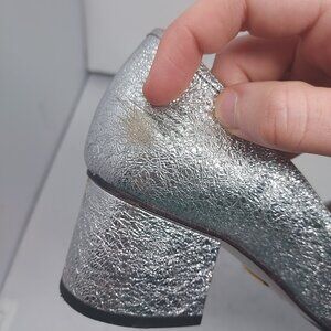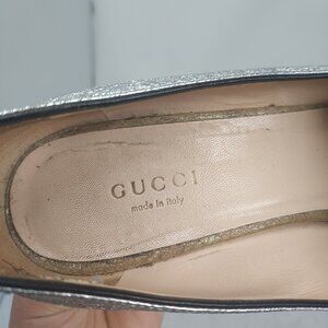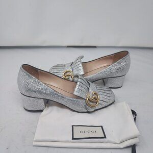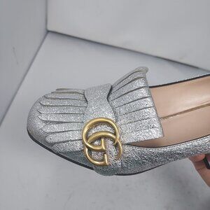 Gucci Marmont Silver Metallic GG Heel Loafer Pump