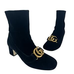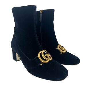 Gucci Marmont Victoire Black Velvet Ankle Boots Size 39