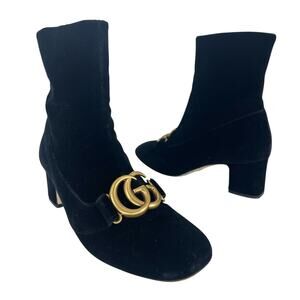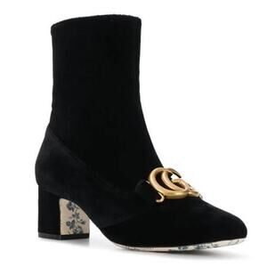 Gucci Marmont Victoire Black Velvet Ankle Boots Size 39