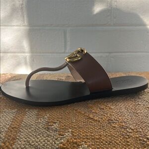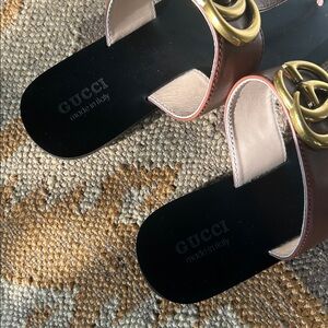 These Gucci calfskin Marmont double G thong sandals are in pristine condition.