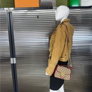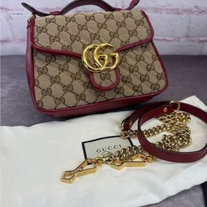 Authentic Gucci Marmont Matelasse Top Handle GG Khaki Red Shoulder Bag