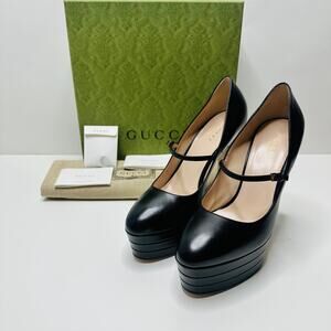 Gucci Mary Jane Angel Platforms 40/ US 10 Pumps Black Leather Heel NIB $1,200