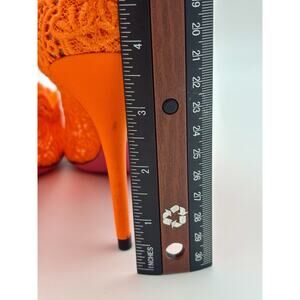 100% Authentic Gucci Mary Jane Heels — striking orange lace with a pink sole and sparkling rhinestone buckle. Elegant designer heels that blend classic Mary Jane lines with playful color and luxe detailing. See photos for close-up condition — excellent, unworn except for a few smudges on the soles.