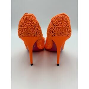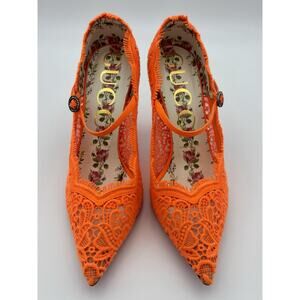 Gucci Mary Jane Heels Neon Orange Lace Size 39 Rhinestone Buckle Authentic