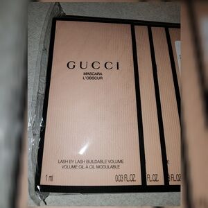 Gucci Mascara L'Obscur (also referred to as Lash By Lash Buildable Volume Mascara). It offers buildable volume, length, and definition, with a long-wearing, smudge-proof, and flake-proof formula. The mascara has an ultra-rich creamy texture designed to provide customized performance for different looks, from classic to bold. It features a flexible elastomer brush with a thin tip for precision, allowing for application to the smallest lashes and separation for a fanned-out effect. Each booklet has a travel size Mascara. Great for travel, purse, gift, stocking stuffer.
