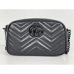Gucci Matelassé Monochrome Small GG Marmont Chain Shoulder Bag Black B-9