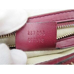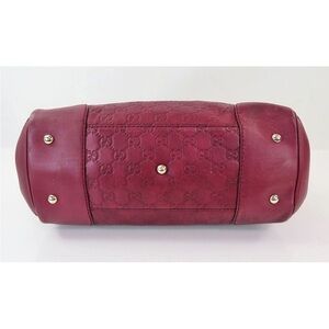 Chic Gucci shoulder bag in deep red. Features elegant handles and subtle pattern.