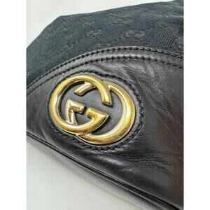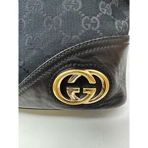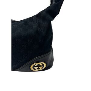 Gucci Medium Britt Hobo Shoulder Bag Black Monogrammed Canvas Gold Tone Hardware