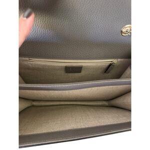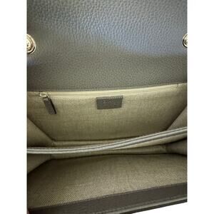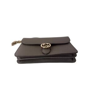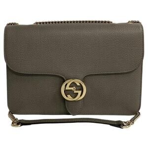 Elevate your wardrobe with this authentic Gucci Medium Interlocking G Shoulder Bag in supple grey dollar calfskin leather. Featuring the iconic gold Interlocking G logo, structured flap design, and chic chain-leather shoulder strap, this timeless piece combines modern sophistication with classic Gucci heritage.