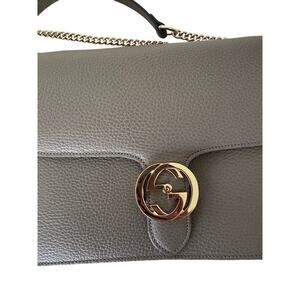 Gucci Medium Interlocking G Shoulder Bag in Grey Dollar Calfskin Leather NWOT