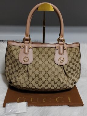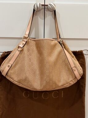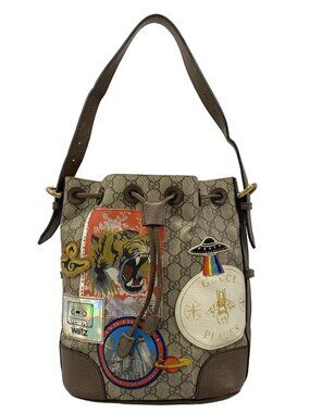 Gucci Shoulder Bag Medium Marrakech Tote in Black Grained Leather and Gold hardware. The product is in Perfect Condition (AA).