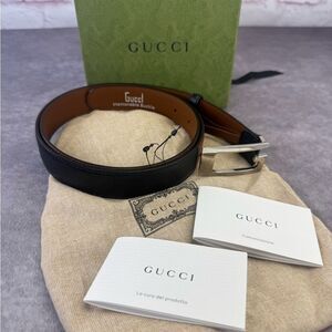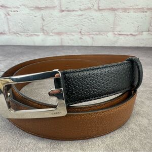 Gucci Memorable Buckle G Black and Brown Leather Belt 709958 100/40