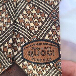 Gucci Men Monogram Tie Brown Tan Made in Italy 100% Silk