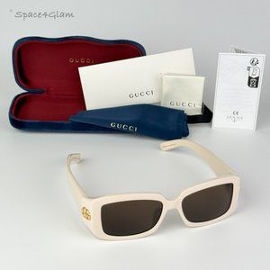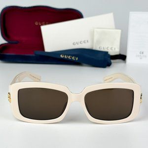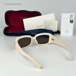 Gucci Men Sunglasses Ivory Brown Rectangle GG1403SK 004 BRAND NEW