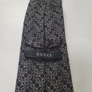 Gucci Mens Designer Geometric Print Tie Black Luxury Old Money Career Business