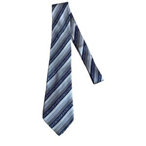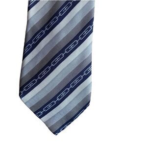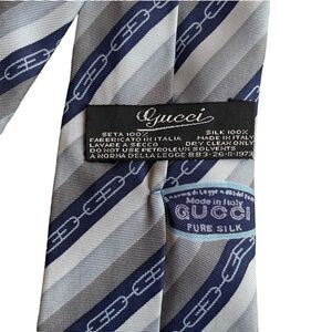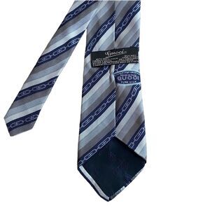 Gucci Mens GG Link Logo Print Neck Tie Blue Stripe 100% Silk Luxury Professional