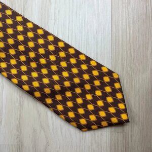 Gucci Mens Gold Geometric Pattern Designer Pure Silk Necktie 58x3.5 Inches