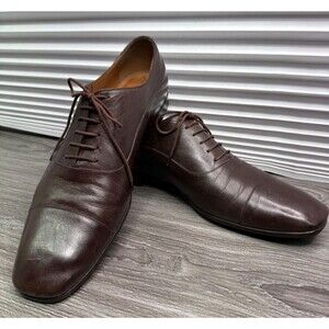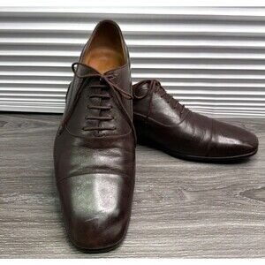 Gucci Men's Interlocking Lux Leather Lace Up Oxford Dress Shoes Size 12 Brown