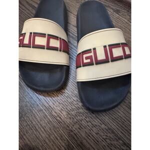 Gucci Mens Pursuit Logo Pool Slides Sandals Slip On US Sz 11