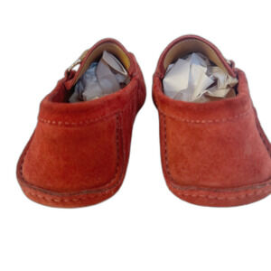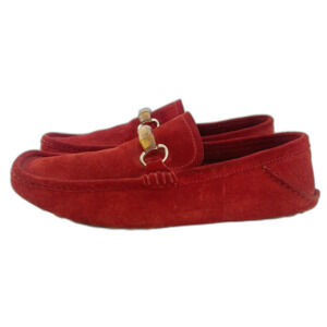 Gucci Men's Red Suede Horsebit Loafers Driving Loafers Bamboo Size 10
