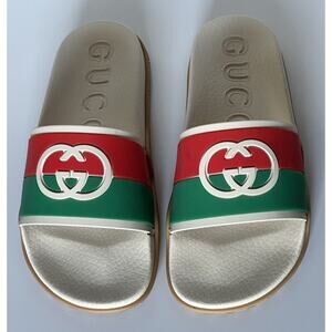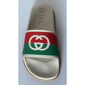 Gucci Mens Rubber GG Interlock White/Red/Green Sandals 5.5 US 5 Gucci 655265 NIB
