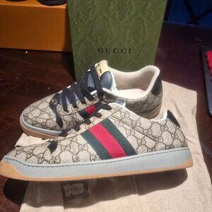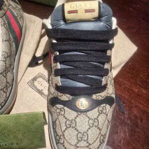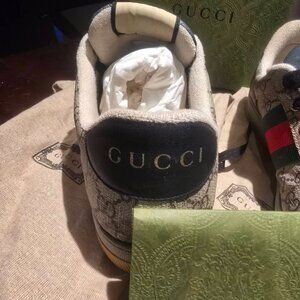 The product is a pair of Gucci men's sneakers in size 12. These casual sneakers feature a nylon upper material and a stylish design typical of the Gucci brand. Perfect for everyday wear, these sneakers offer a blend of comfort and fashion for men looking to add a touch of luxury to their footwear collection.