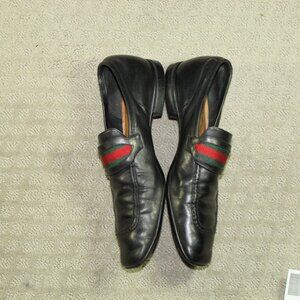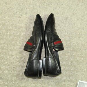 Gucci Men's Sz 6.5D/ Wm 8 Unisex Black Leather/Signature Stripe Dress Loafers