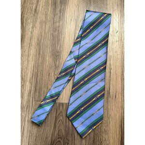 Gucci Men's Vintage Silk Blue Stripe Abstract Belt Print Tie Made in Italy. Length 55in, width 3.5in.