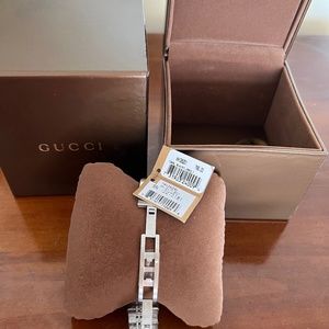 New with tags, box and certificate, never worn Gucci Men’s Watch. YA126201. Black face, stainless steel band. Gucci book with original Certificate included and still in Gucci box (shown in pic).