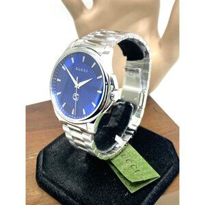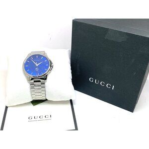 Gucci Men's Watch YA126371 G-Timeless Swiss Quartz Blue Dial Silver Steel 40mm $1150 (AY6494Y)