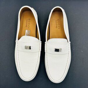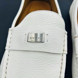 Gucci Men's White Scotch Grain Leather Driving Shoes Size US 9.5 G 9 EUR 43 NEW. These shoes come with the original box and dustbag.