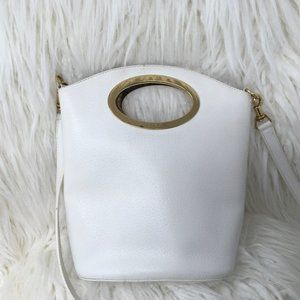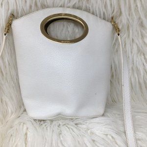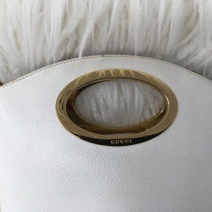 Gucci Metal Handle Embossed Leather Handbag Bucket White Vtg DISTRESSED Inside