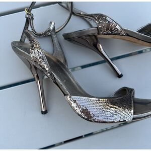 Gucci Metallic Gray Sequins Embellished Ankle Strap Heels - 37/7