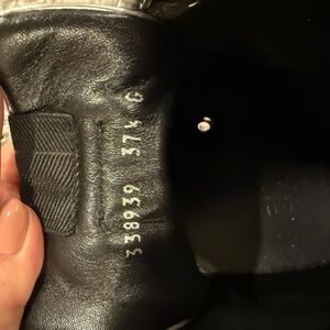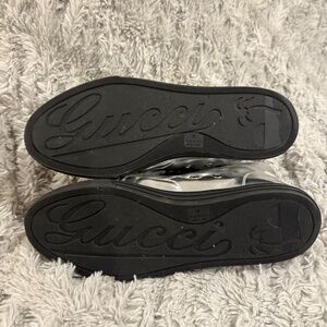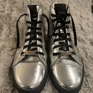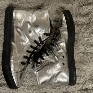 Metallic sneaks are in! Silver leather with dark edging, soles and laces make a striking appearance for fall/winter. Excellent condition.